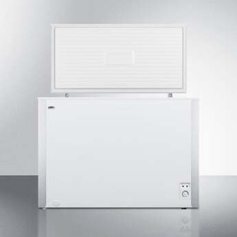 The Summit SCFM92 9.0 Cu. Ft. White Chest Freezer is a great food storage solution for year round freezing. Perfect for storing the spoils of a successful hunting season, or stocking up for long winter, this chest freezer is a great way to keep things organized and increase their shelf-life. The 9.0 cu. ft. capacity holds up to 315 pounds of meat at a time. Frost and ice build-up are controlled by a manual defrost operation through a static cooling system. Three plastic baskets keep contents organized, or remove them entirely for extra space. The Summit SCFM92 is 100% CFC free and environmentally friendly.