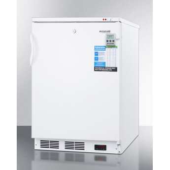 For optimum temperature assurance, the VT65MLBIVACADA includes a digital thermostat and a high/low temperature alarm with a NIST calibrated temperature display to the nearest tenth of a degree. A hospital grade cord includes a 'green dot' plug for added safety in high traffic settings, while the self-closing door ensures stored items aren't accidentally exposed to room temperature. This model comes in a white finish and includes a factory installed lock. An access port with contact is pre-installed, allowing users to install additional monitoring equipment. Customers can specify the access port location upon order.