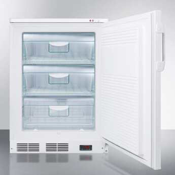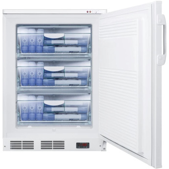 Made in Europe, the VT65MLBIVACADA is a 32" high front-breathing all-freezer designed for built-in installation under lower ADA compliant counters. The 3.2 cu.ft. interior offers static cooling for stable results. Four slide-out storage baskets with clear plastic fronts ensure that stored items are not exposed unnecessarily to room temperature. This unit has a flat door liner as recommended by the CDC.