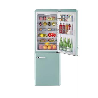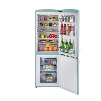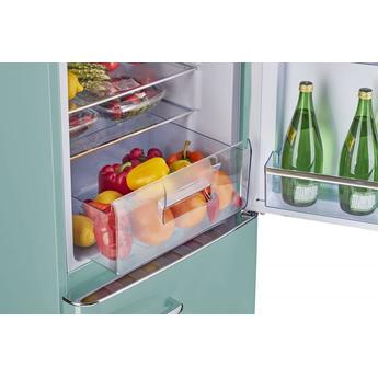 - 7 Cu. Ft. Total Capacity, 4 Glass Shelves, Crisper Drawer, Right Hinge, Manual Defrost, Energy Star Certified, Adjustable Glass Shelves, Adjustable Thermostat, ETL Listed, Adjustable Wine Rack in Ocean Mist Turquoise