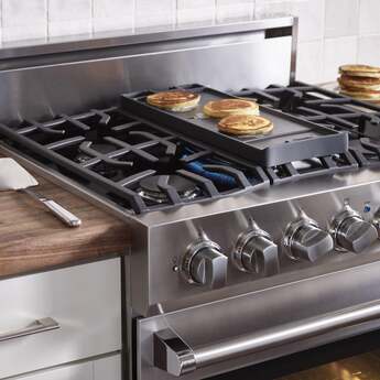 • Natural Gas, 5 Sealed Burners, Convection Oven, Continuous Grates, Self-Cleaning Mode, Viewing Window, ProFlow Convection Baffle, SureSpark Ignition System, TruGlide Oven Racks in Damascus Grey