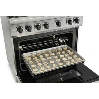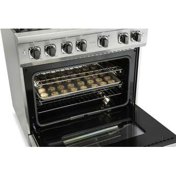 • Liquid Propane Gas, 6 Sealed Burners, 5.1 cu. ft. Total Oven Capacity, Convection Oven, Continuous Grates, Viewing Window, TruPower Plus, SoftLit LED Lights, SureSpark Ignition System, GentleClose Door, Gourmet-Glo Infrared Broiler, ProFlow Convection Baffle, VariSimmer, BlackChrome Knobs, Star-K Certified in Damascus Grey
