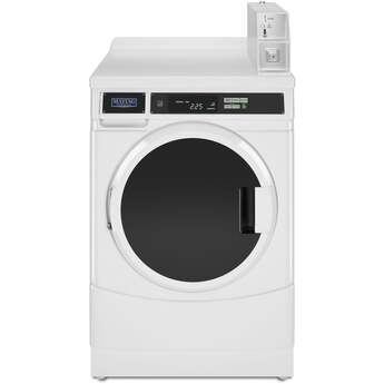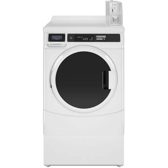 Create a consistently efficient experience for customers with the large-capacity 6.7 cu. ft. Whirlpool-CGD9150GW 27" White Commercial Front-Load Gas Dryer - Factory-Installed Coin Drop with Coin Box. Thanks to microprocessor controls, tailor vending prices to your specs, serving clients with a touchpad offering three cycles for their needs. Put this dryer where you want it, owing to its reversible door swing. Plus, a front-access panel provides easy entry to the transmission, motor and washtub for service, and a porcelain-enamel top extends longevity.