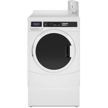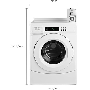 An automatic load balancing feature on this Whirlpool-CHW9150GW 27" White Commercial High-Efficiency Electric Front Load Washer Featuring Factory-Installed Coin Drop with Coin Box makes it handle large quantities of clothes with ease. Also, the roomy wash basket allows people to wash numerous items of clothing all at once instead of doing several time-consuming loads. A choice of three wash settings offers options as users cleanse colors or whites. There is also a Super Cycle feature that provides an additional three minutes of wash time when desired.