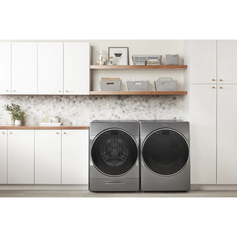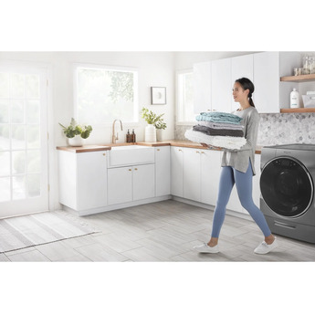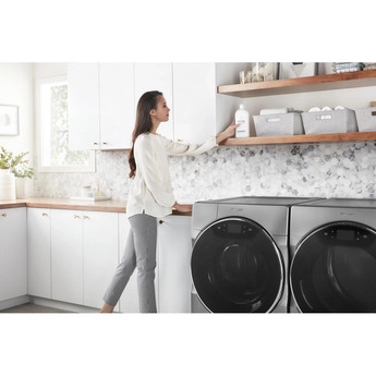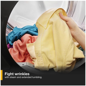 Care for your family from your smartphone or tablet. Control your dryer whether you're at home or away. You'll be able to do things like automatically start the dry cycle or pause it to remove your delicate items. You can also activate features like the Wrinkle Shield option to help keep wrinkles from setting in. Clothes are ready to wear thanks to the Steam Refresh cycle. It releases wrinkles and reduces odors without rewashing. Using water and a little heat, items that don't need to be rewashed are ready to wear in no time. Help keep wrinkles from setting into clean, dry fabrics.