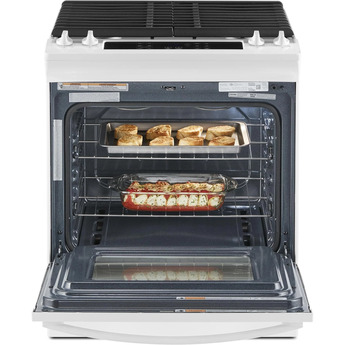 • 4 Burners, Sealed Cooktop, Storage Drawer, Delay Bake, Self-Cleaning Mode, ADA Compliant, SpeedHeat Burner, Frozen Bake Technology, Adjustable Self-Clean Cycle, Cast Iron Grates, Keep Warm Function, Sabbath Mode in White