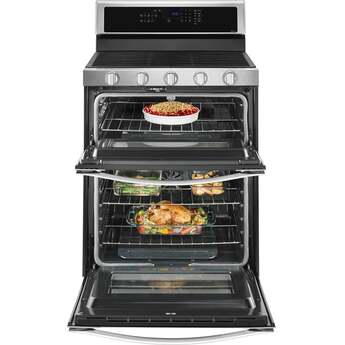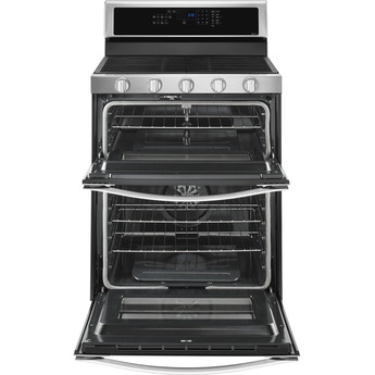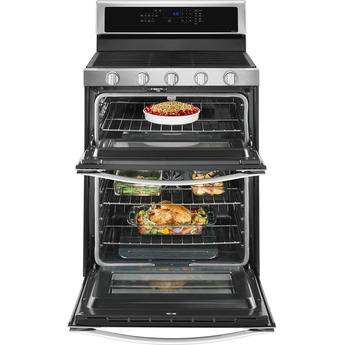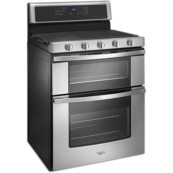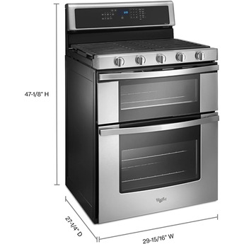Spend less time cooking and more time enjoying life with the Whirlpool WGG745S0FS 30" Stainless Steel Gas Double Oven Range. A SpeedHeat burner harness the power of 16,000 BTUs sear and boil at light speed. Your kitchen is sure to be flapjack central thanks to the specially designed oval burner nestled in the center of the cooktop perfect for a removable griddle pan. Continuous cast-iron grates cover the surface from edge-to-edge and lift on hinge for quickly cleaning minor spills, or remove entirely to wash in the dishwasher when major accidents occur. The True Convection oven utilizes three heating elements and convection fan to bake foods faster than ever before and Whirlpool’s Frozen Bake technology makes preheating a thing of the past. This double oven dynamo even has the capability to convert traditional recipes into convection recipes, no calculator needed. The Whirlpool WGG745S0FS is truly built with the busy home cook in mind.