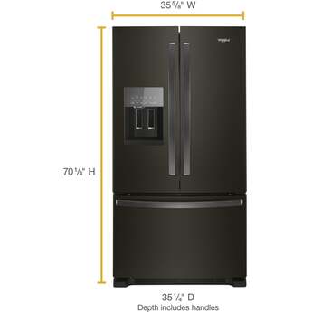 This is a 36" French Door Refrigerator by Whirlpool that offer 24.7 cu. ft. storage capacity. This refrigerator features Fingerprint-Resistant Stainless Steel, humidity controlled double crisper, tap touch control, two tier freezer storage, gallon door bins, spillproof shelves and is Energy Star qualified.
