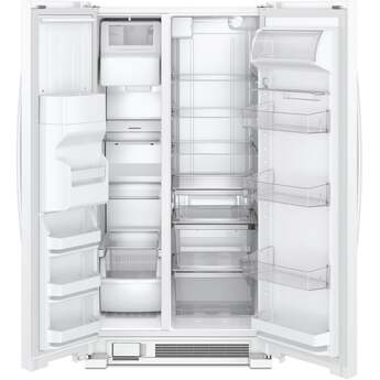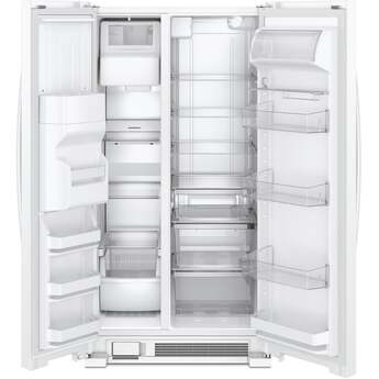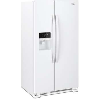 If you went a little overboard at the market, not to worry. The Whirlpool-WRS321SDHW 21.4 Cu. Ft. White Side-by-Side Refrigerator has you covered. With a holding capacity of up to 21 bags of groceries, its adjustable shelves, clear crisper and ample door storage are designed for maximum flexible and freshness. Its pristine exterior is pleasingly fingerprint resistant, while a built in ice maker and water filtration system lets your family stay hydrated, as the refrigerator door stays closed.