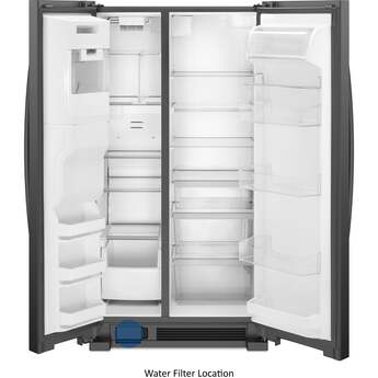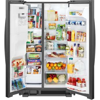 This Side-by-Side Refrigerator by Whirlpool features LED interior lighting, deli drawer, and electronic temperature controls. This refrigerator offers up to 24.5 cu. ft. of total capacity and has humidity controlled crispers.