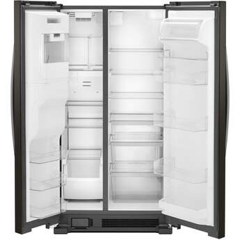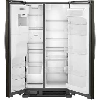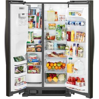 This Side-by-Side Refrigerator by Whirlpool features LED interior lighting, deli drawer, and electronic temperature controls. This refrigerator offers up to 24.5 cu. ft. of total capacity and has humidity controlled crispers.