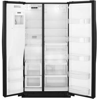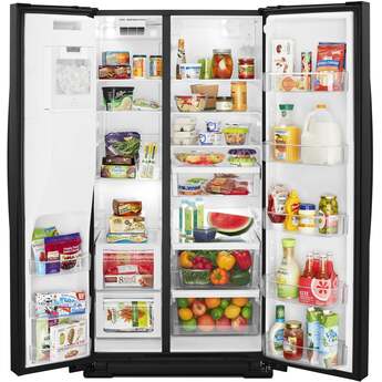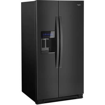 Got a large family or crew? The 36-inch Whirlpool-WRS588FIHB 28.49 Cu. Ft. Black Side-By-Side Refrigerator endeavors to feed all of them. Powered by the Accu-Chill temperature regulation system and adaptive defrost, this Whirlpool moves to the head of the side-by-side refrigeration class. Thanks to an exterior water and ice dispenser freeing up an extra shelf, the freezer boasts almost 11 cu. ft. inside and the fridge has more than 17.5 (including frameless glass shelving and adjustable gallon door bins). Hidden hinges, fingerprint-resistant exterior and LED interior lighting combine for a jam-packed unit!