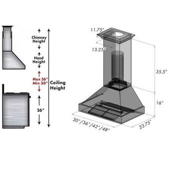 Z Line ZLINE 8654BM36 36 Inch Wall Mount Ducted Hood