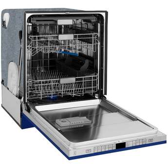 • 6 Wash Cycles, 16 Place Settings, Energy Star Certified, Low dBA, UL Certification, ETL, Sanitize Option, 3rd Rack, Interior LED Lights in Blue Gloss