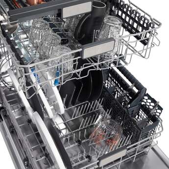 • 6 Wash Cycles, 16 Place Settings, Energy Star Certified, Low dBA, Stainless Steel Tub, UL Certification, ETL, Sanitize Option, 3rd Rack, LED Lights in Stainless Steel