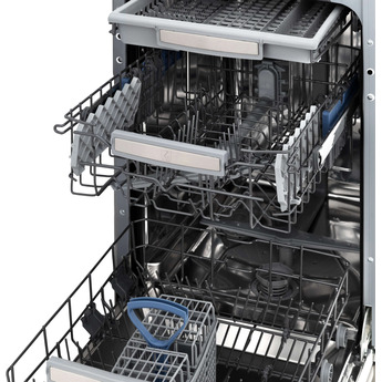 • 8 Wash Cycles, 10 Place Settings, Energy Star Certified, Low dBA, Stainless Steel Tub, UL Certification, ETL, Sanitize Option, 3rd Rack in Panel Ready
