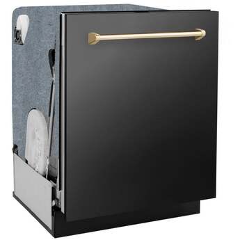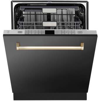 Z Line Autograph Edition 24 Inch 3rd Rack Top Touch Control Tall Tub Dishwasher: Black Stainless Steel With Polished Gold Handle