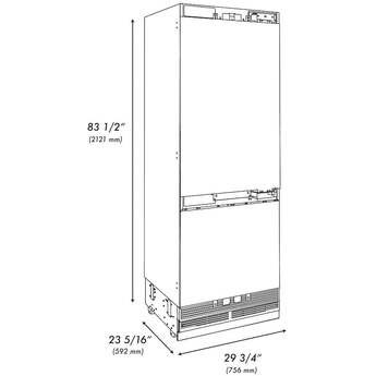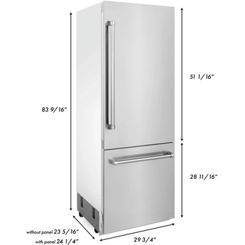 Z Line 30 Inch 16.1 cu. ft. Built-In 2-Door Bottom Freezer Refrigerator with Internal Water and Ice Dispenser: Panel Ready