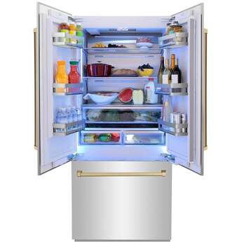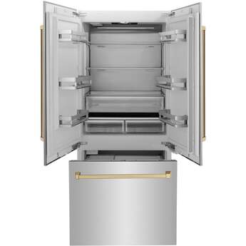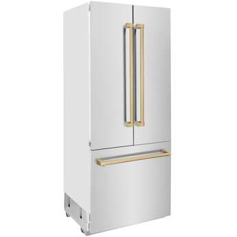 Z Line 36 Inch Autograph Edition 19.6 cu. ft. Built-in 2-Door Bottom Freezer Refrigerator with Internal Water and Ice Dispenser: Stainless Steel With Champagne Bronze Accents