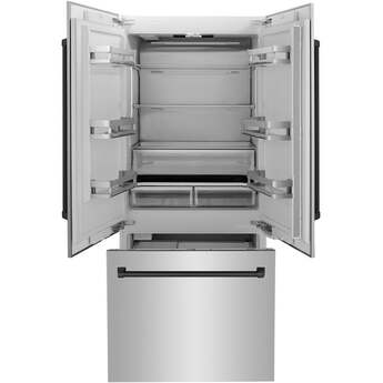 Z Line 36 Inch Autograph Edition 19.6 cu. ft. Built-in 2-Door Bottom Freezer Refrigerator with Internal Water and Ice Dispenser: Stainless Steel With Matte Black Accents