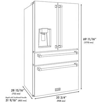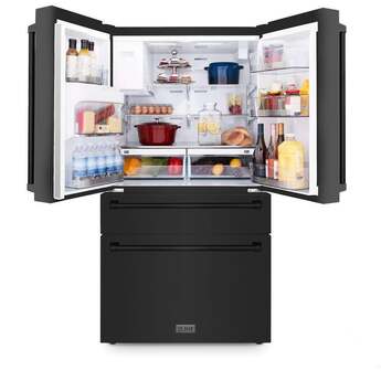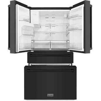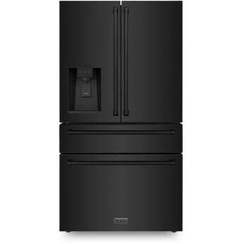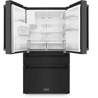 Z Line 36 Inch 21.6 Cu. Ft. 4-Door French Door Refrigerator With Filtered Water And Ice Dispenser: Fingerprint Resistant Black Stainless Steel